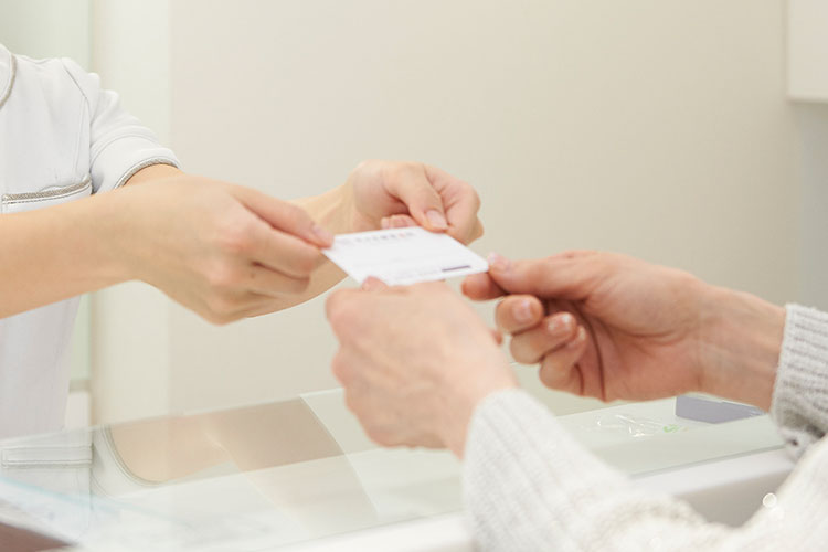 診察が終了いたしましたら待合室でお待ちいただき、お名前が呼ばれましたらお会計ください。初診の場合には診察券をお渡ししますので次回受付の際にお持ちください。